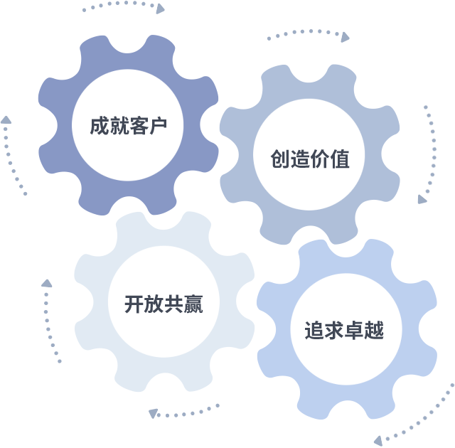 成就客户是一切决策的出发点,创造价值是衡量所有工作的标准,追求卓越是IM电竞做事做人的态度,开放共赢是IM电竞的格局也是最终的结果。价值观的齿轮环环相扣,推动着组织里的每个人不断向前。